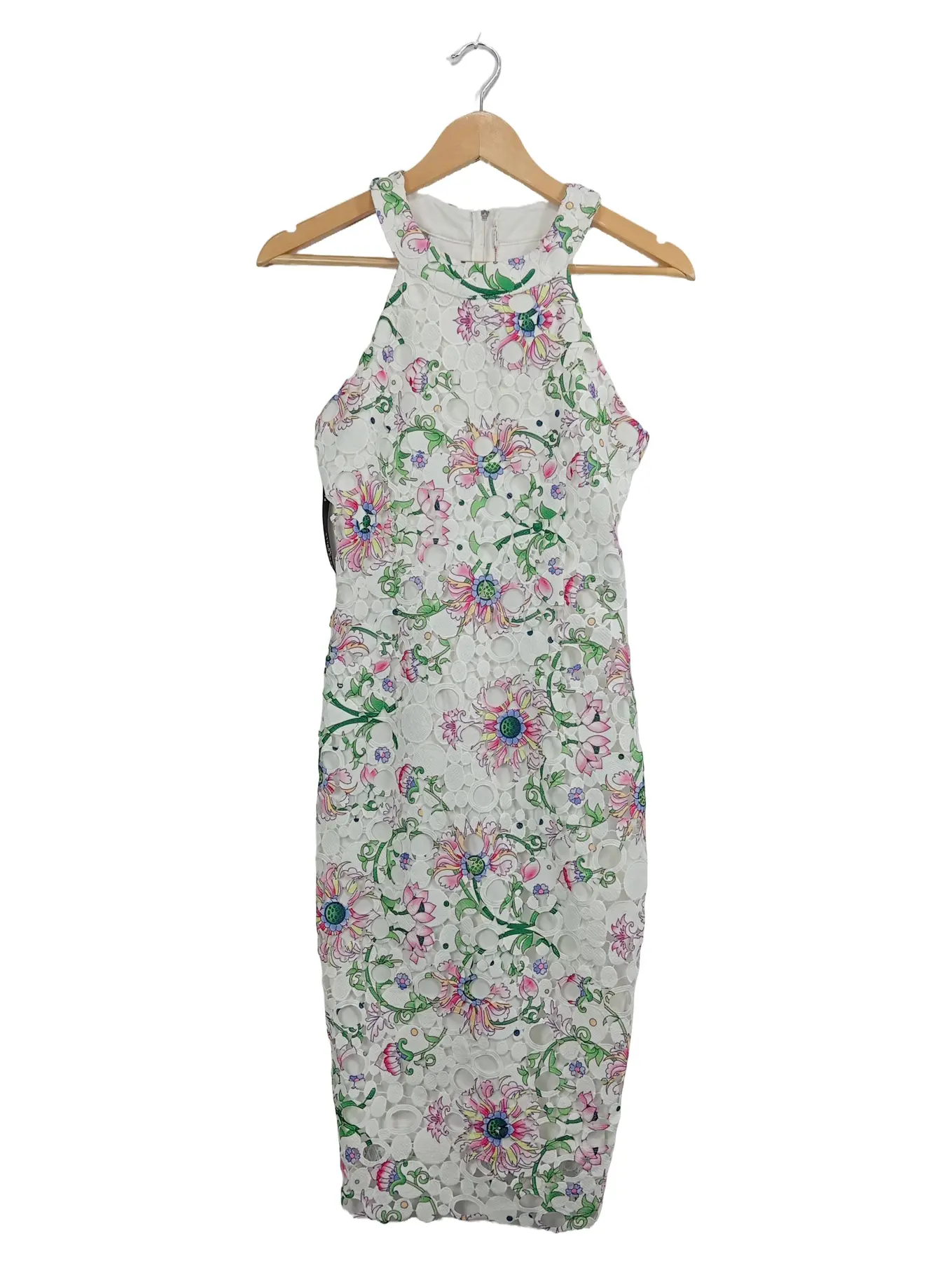 PAPER DOLLS Kleid Damen Gr. 34 Weiß Spitze Blumenmuster Elegant Festlich