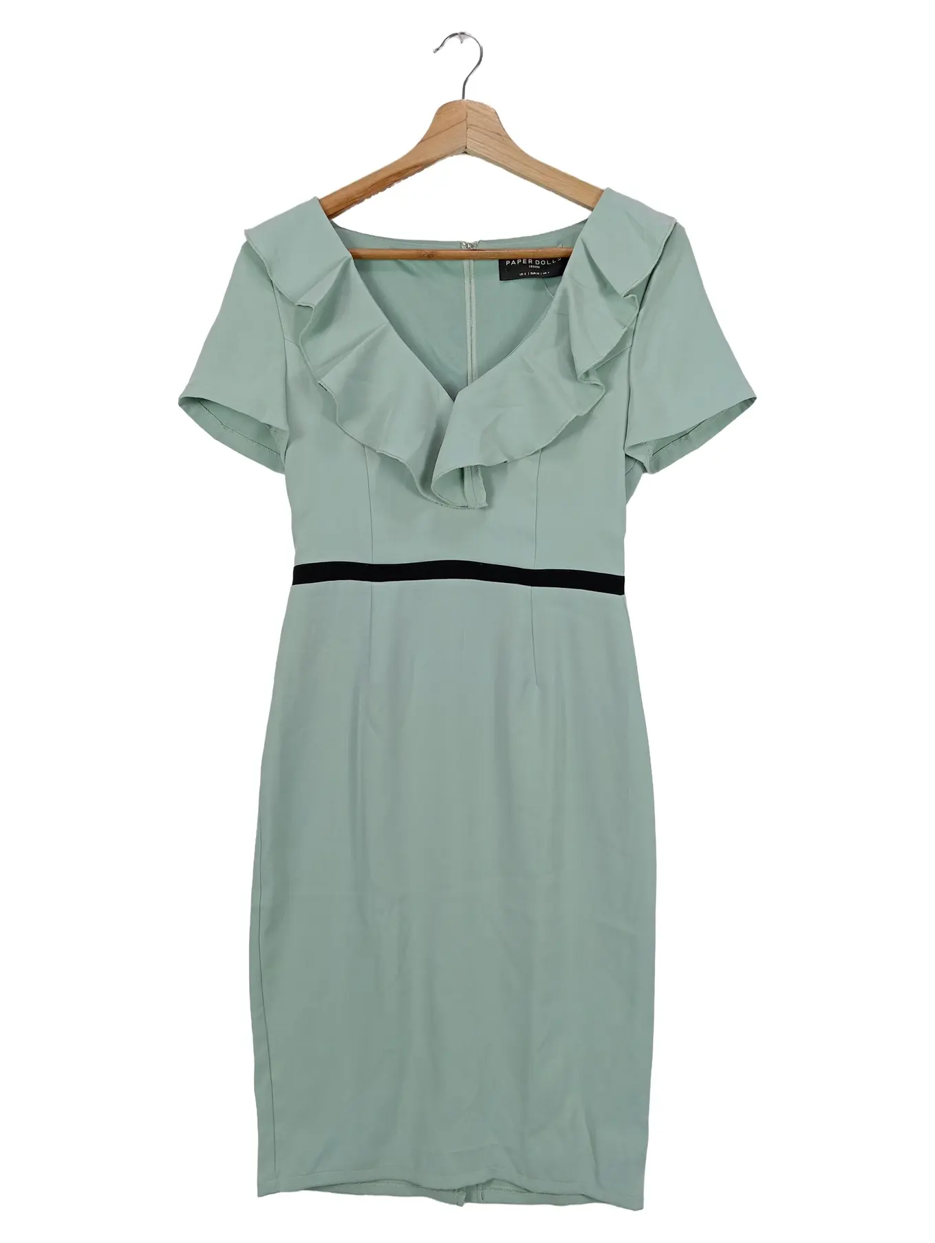 PAPER DOLLS Etuikleid Damen Gr. 36/S Grün Elegant Business Rüschen