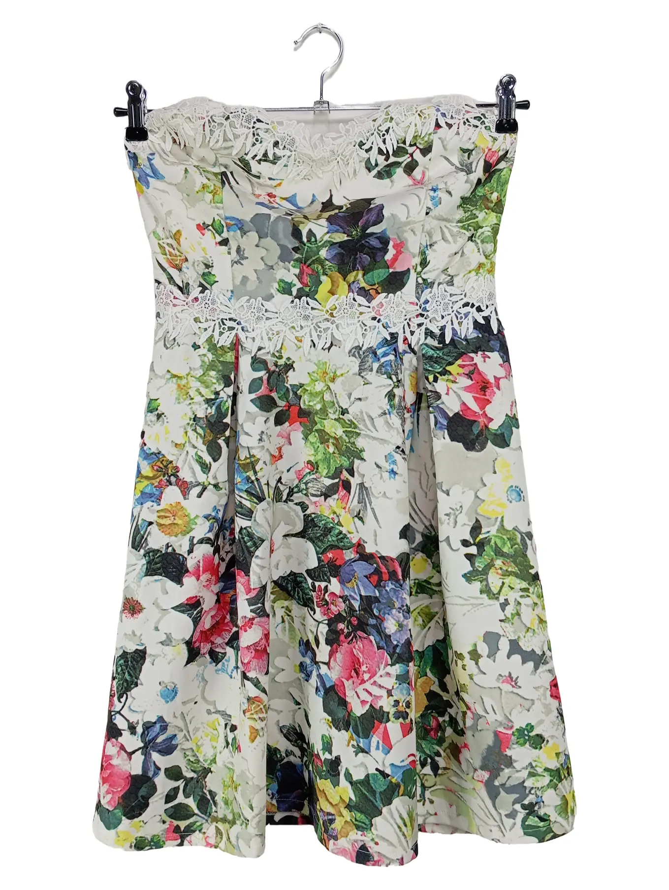 PAPER DOLLS Freizeitkleid Damen Gr. 38/M Mehrfarbig Blumenmuster Trägerlos Elegant