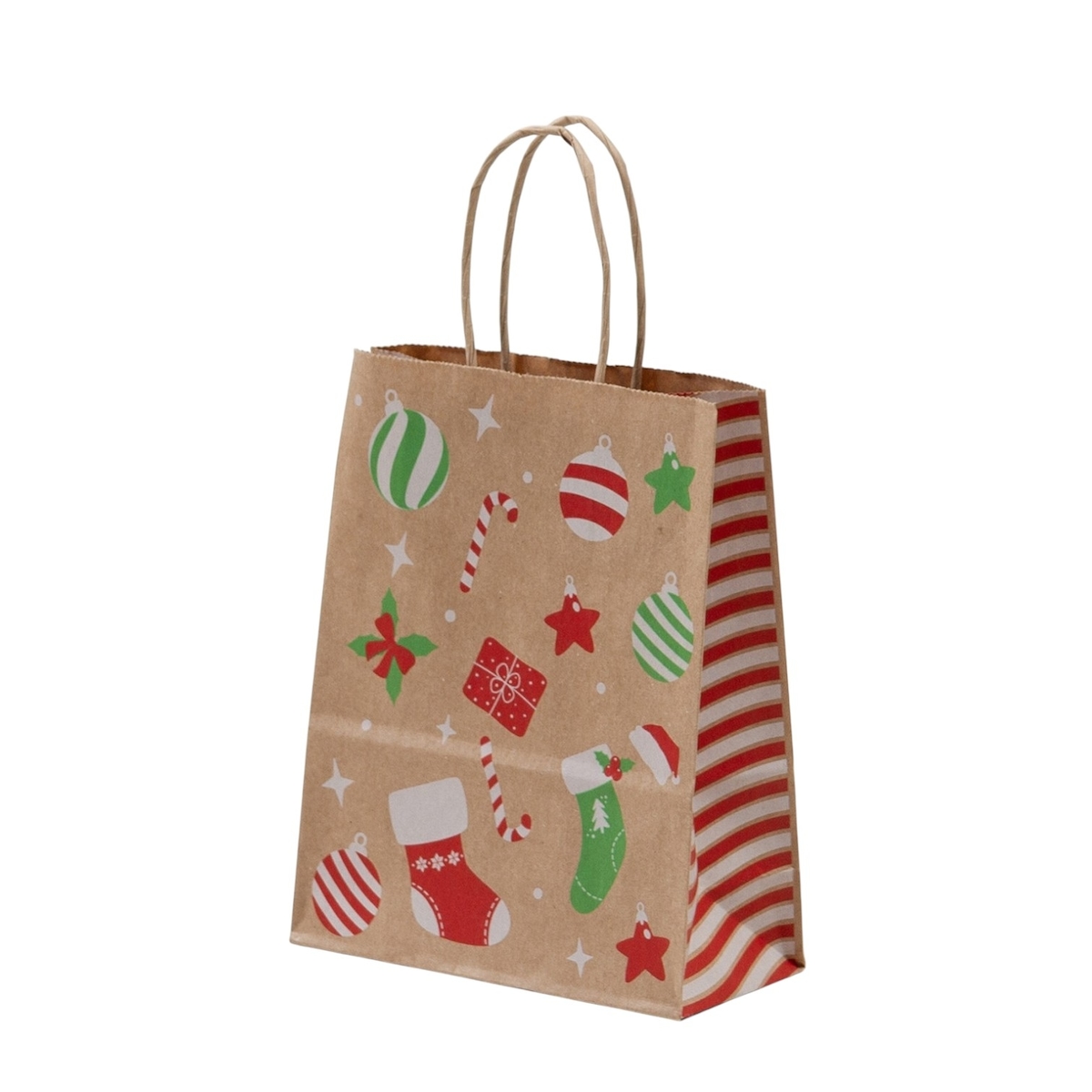 12 Stück Papier Weihnachtsgeschenktüten mit Henkel - braune Kraft-Geschenktüten