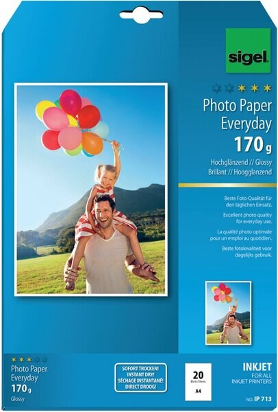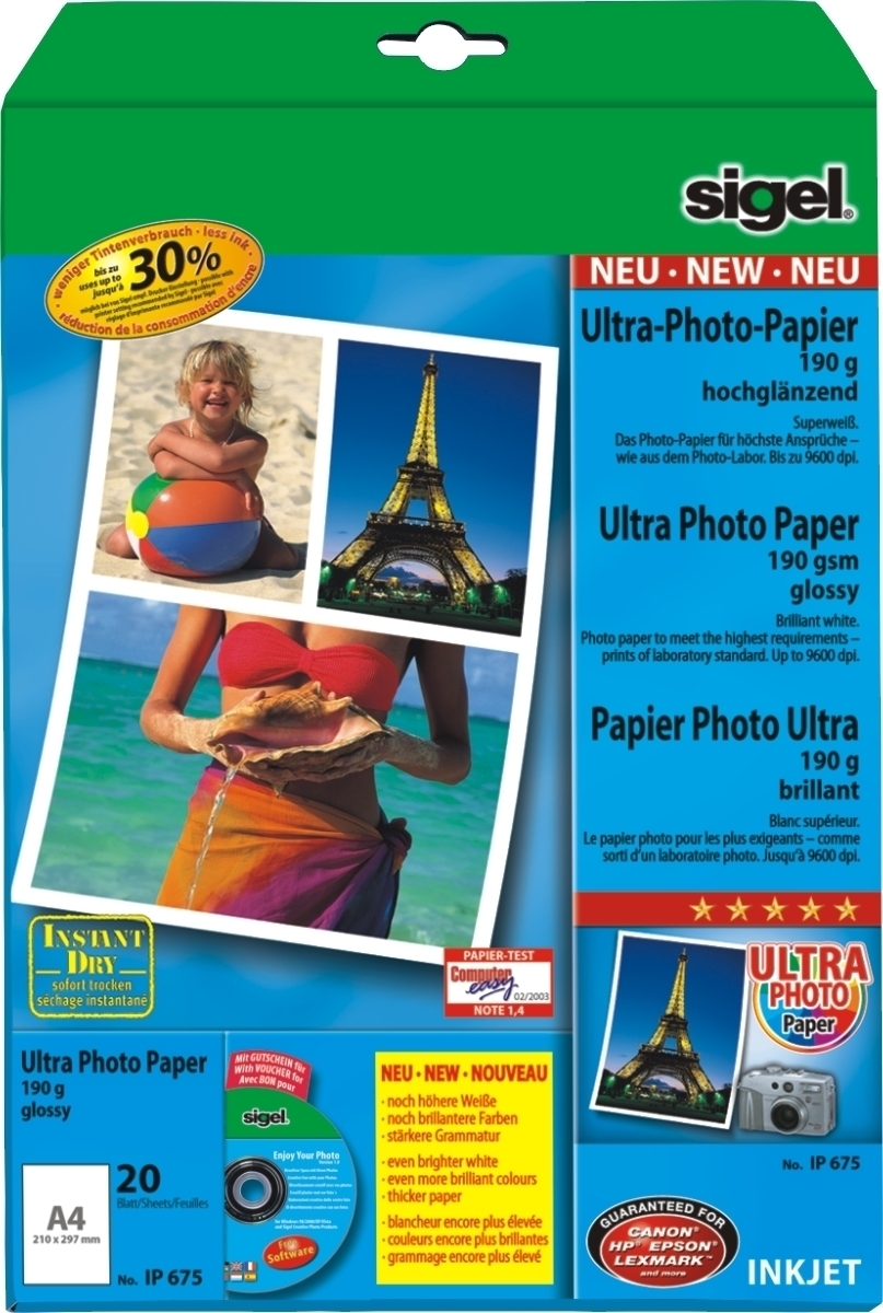 Sigel InkJet-Ultra-Photo-Papier A4 190g/qm hochglänzend 20 Blatt Packung mit 10 Stück