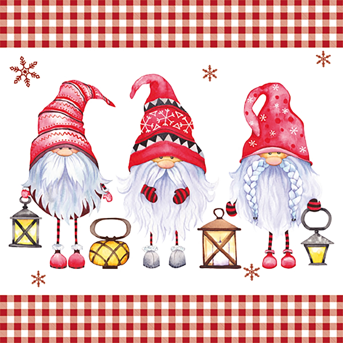 ti-flair 20 Servietten Papier 33x33cm 3-lagig - hochwertige Einweg Papierservietten Weihnachtsservietten Weihnachtszwerge Partyservietten