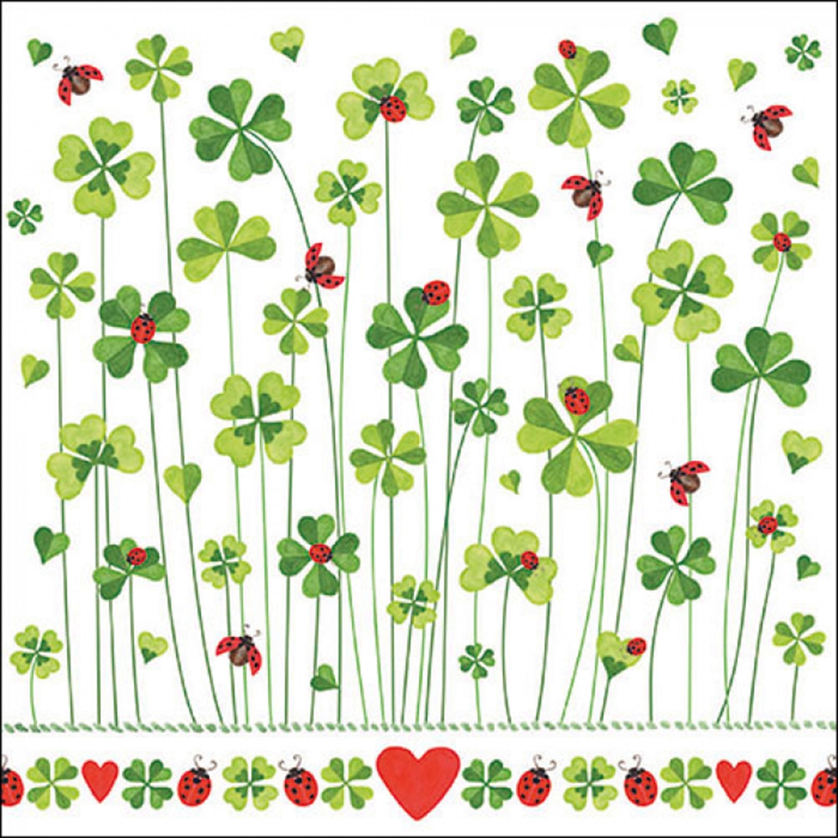 Servietten Papier 33x33cm 3-lag mit Kleeblatt & Marienkäfer Motiv 20 Stk