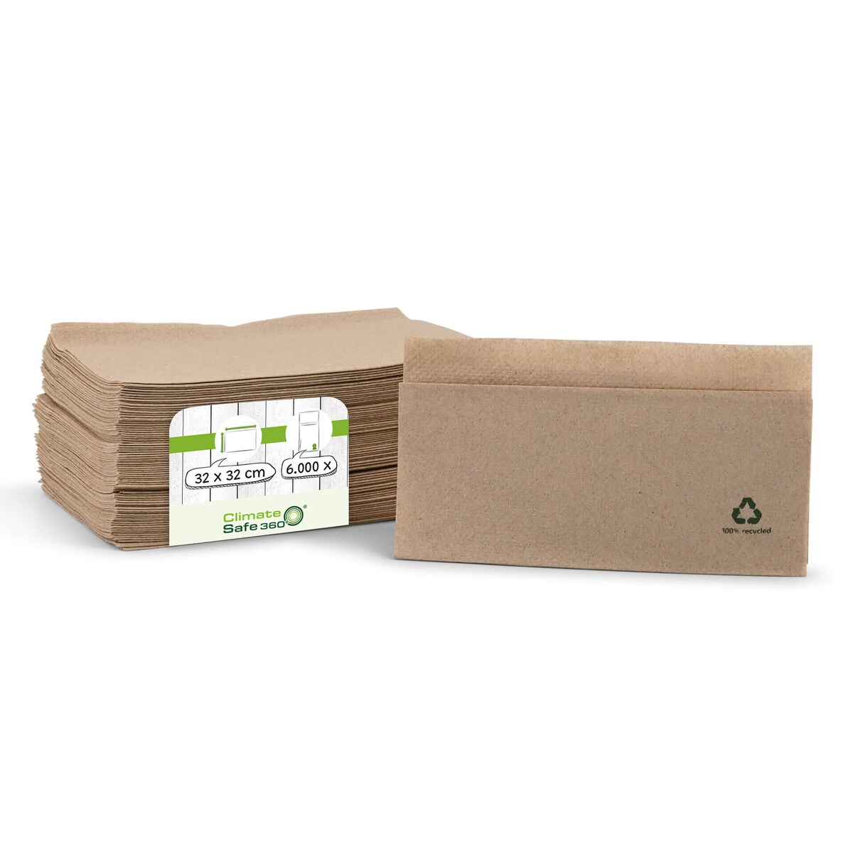 greenbox - Servietten aus recyceltem Papier 32 x 32 cm, 1-lagig, 1/8 Falz, ungebleicht, 6000 St.
