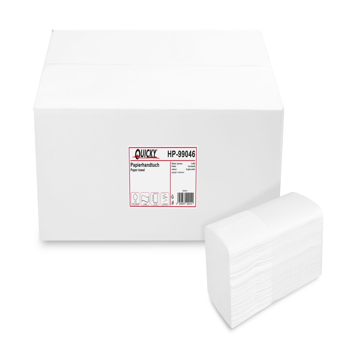 Quicky Papierhandtuch 2-lagig Multi-/Interfold, Zellstoffpapier, hochweiß, 3.200 Blatt