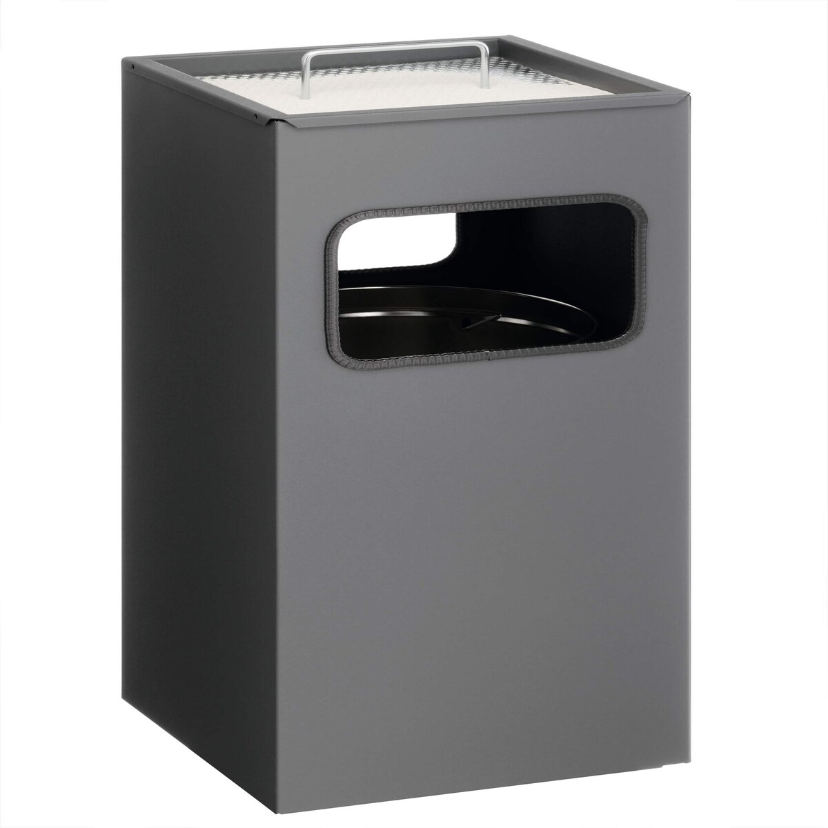 Papierkorb aus Metall mit Ascher, entnehmbarer Inneneimer, eckig, anthrazit