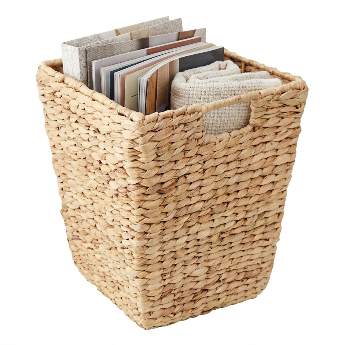 HMF Papierkorb Büro, Aufbewahrungskorb geflochten aus Wasserhyazinthe, Eckig, 25 x 25 x 30 cm