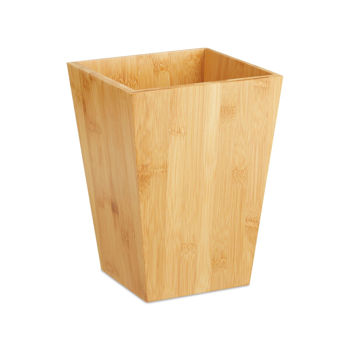 Relaxdays Papierkorb Bambus, eckig, 6 l, ohne Deckel, für Büro, Kinderzimmer, Bad, Mülleimer HxBxT: 27x20x20cm, natur