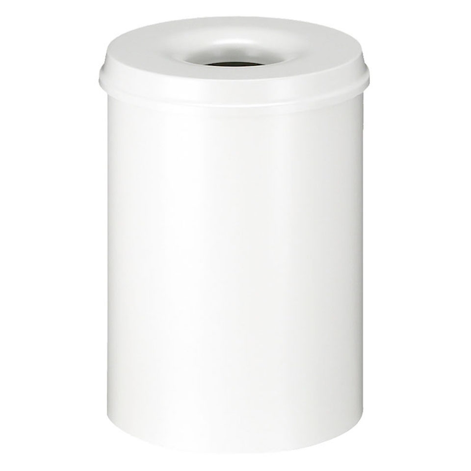 Selbstlöschender Papierkorb | 15 Liter, HxBxT 37x25x25cm | Verzinkter Stahl | Weiß