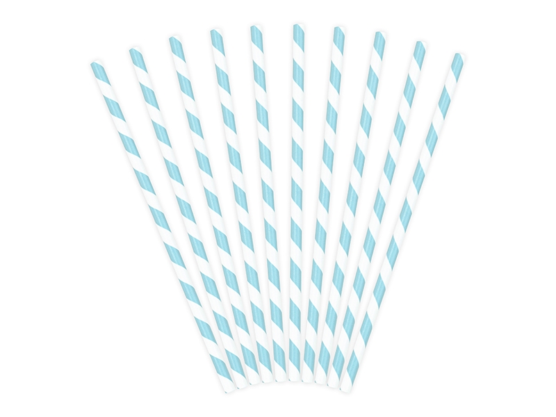 Papierstrohhalme Türkise Streifen, 10 Stück, 20 cm