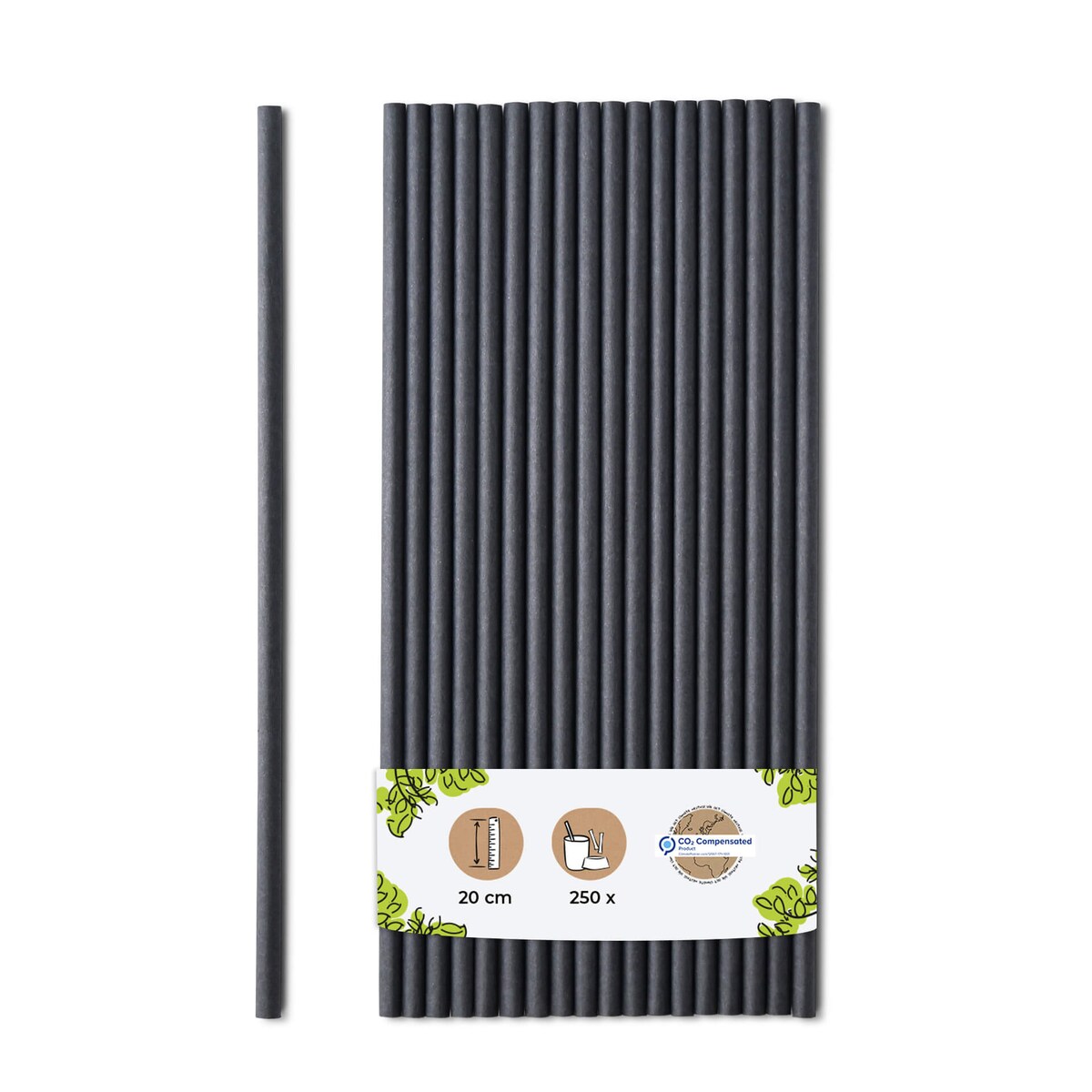 BIOZOYG 250 Stück Trinkhalme 20cm, Ø5mm, schwarz, umweltfreundliche Getränkehalme, biologisch abbaubar, ökofreundliche, nachhaltige Papierstrohhalme