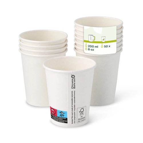 Pappbecher (beschichtet) 200 ml / 8 oz, Ø 80 mm, weiß, 50 Stück