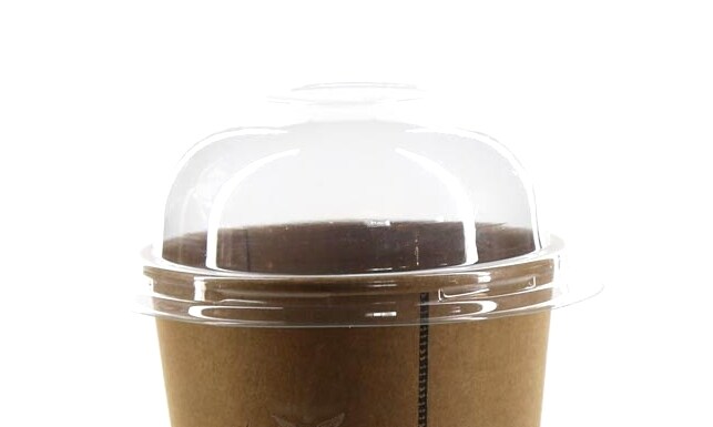 500x rPET Dom Deckel Ø 90 mm mit Loch für Pappbecher 0,3 l-0,4 l