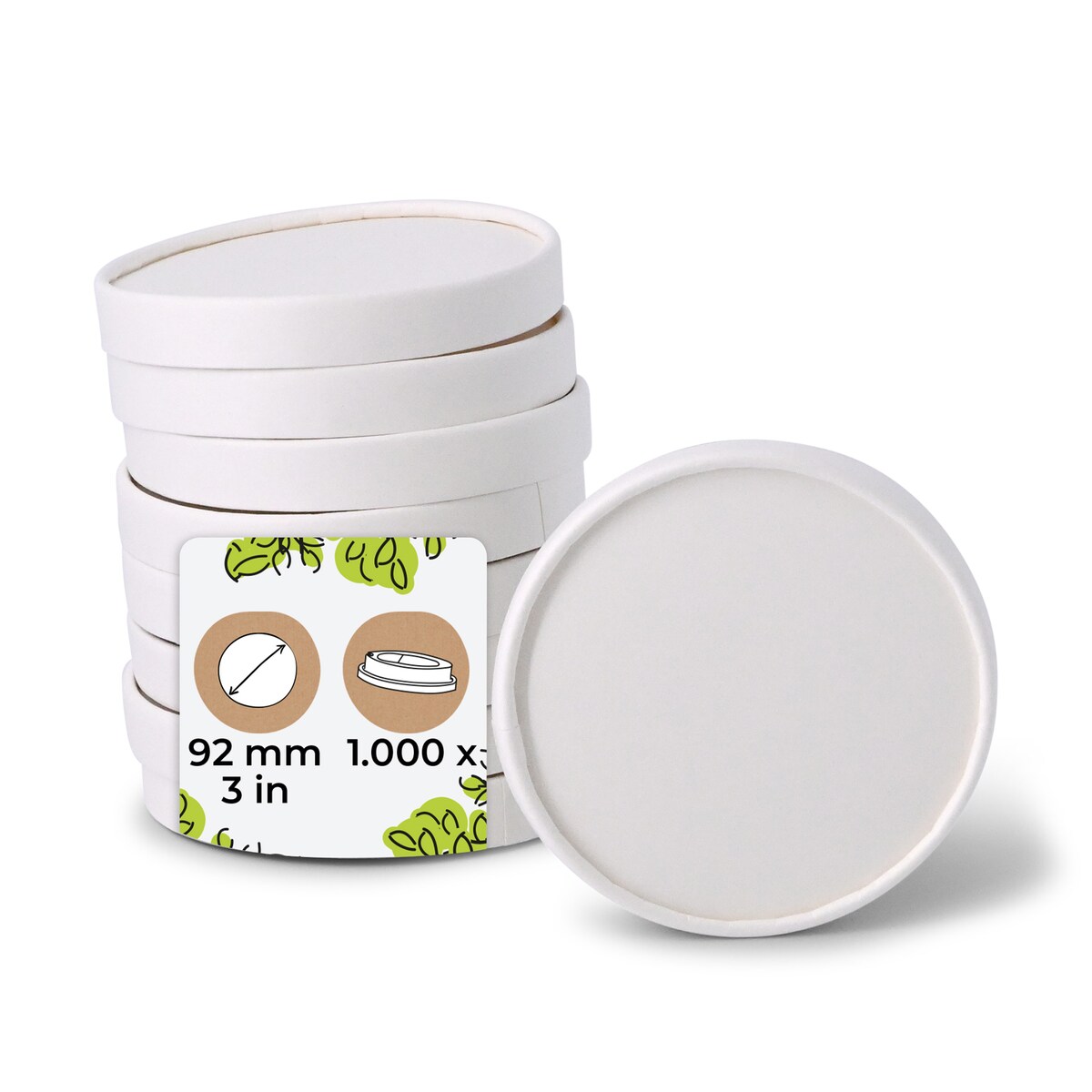BIOZOYG Pappdeckel Eisbecher 1000 Stück Ø 92 mm Weiß Deckel für Eisbecher Beschichtet Einweg Kartondeckel Einwegdeckel Pappbecher to go Takeaway