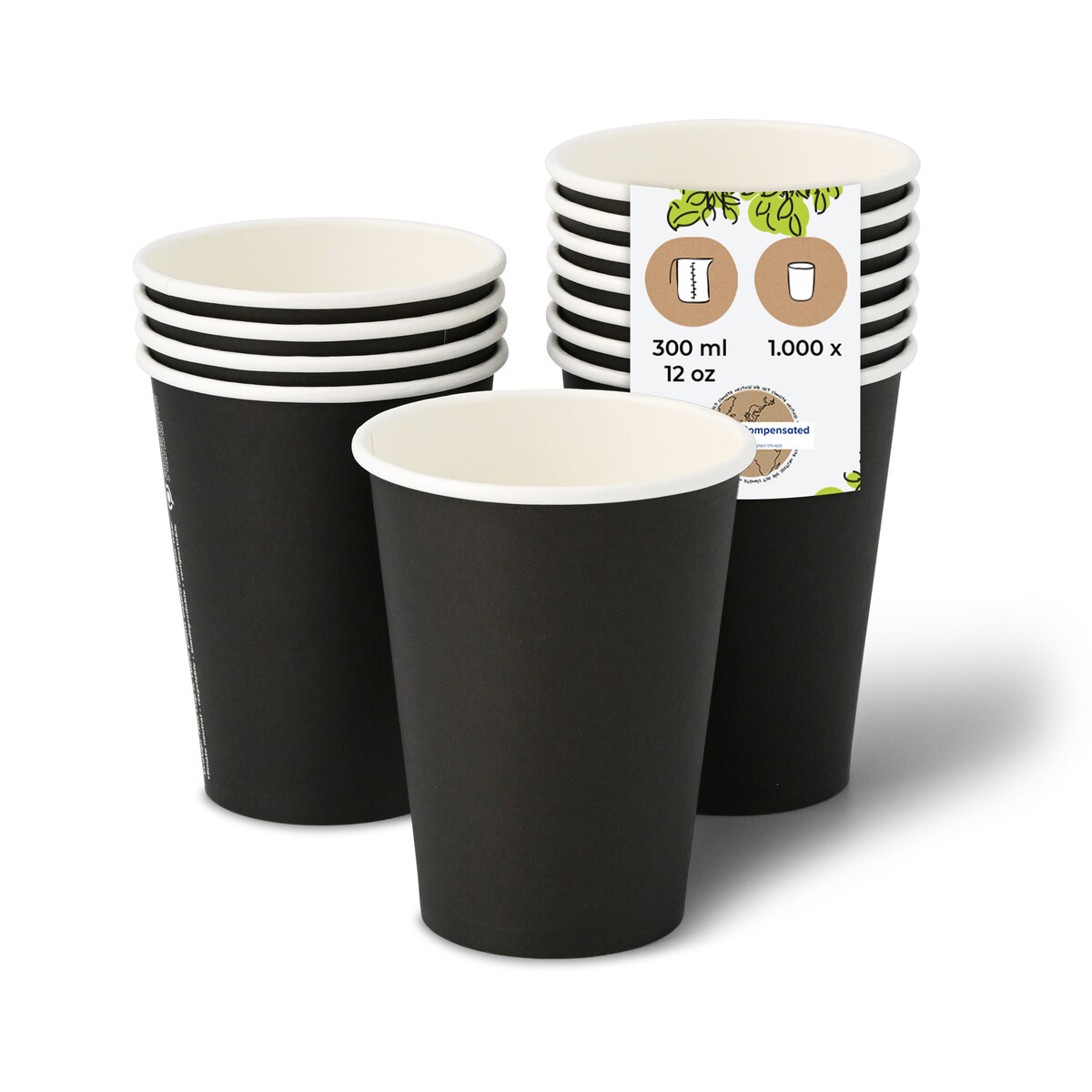 BIOZOYG Pappbecher 1000 Stück 300 ml / 12 oz, Ø 90 mm, schwarz - Becher für Heißgetränke Kaffeebecher to go Einwegbecher, Alternative zu Styropor