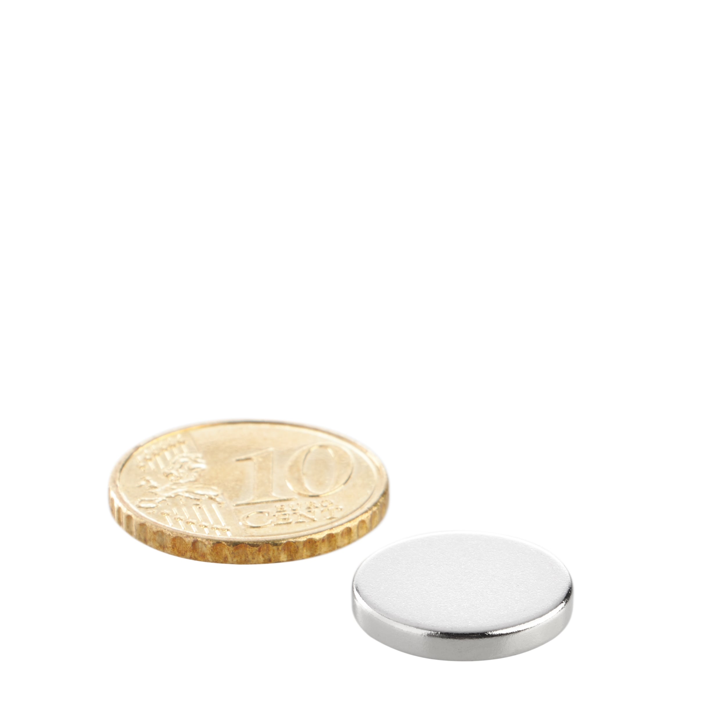 10 Scheibenmagnete Neodym 15 mm x 2,5 mm | N35, axial (parallel zur Höhe), silber