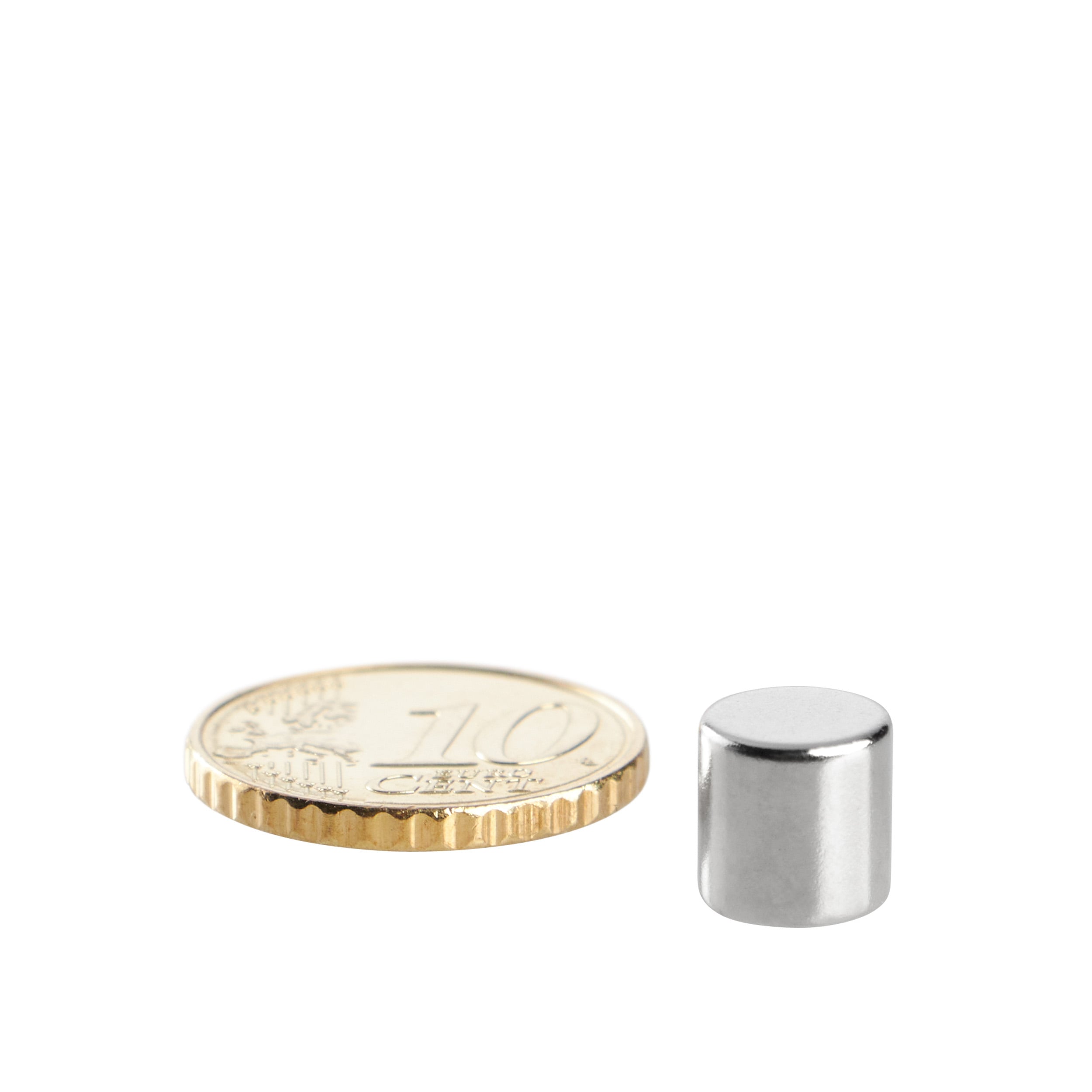 10 Scheibenmagnete Neodym 8 mm x 8 mm | N45, axial (parallel zur Höhe), silber