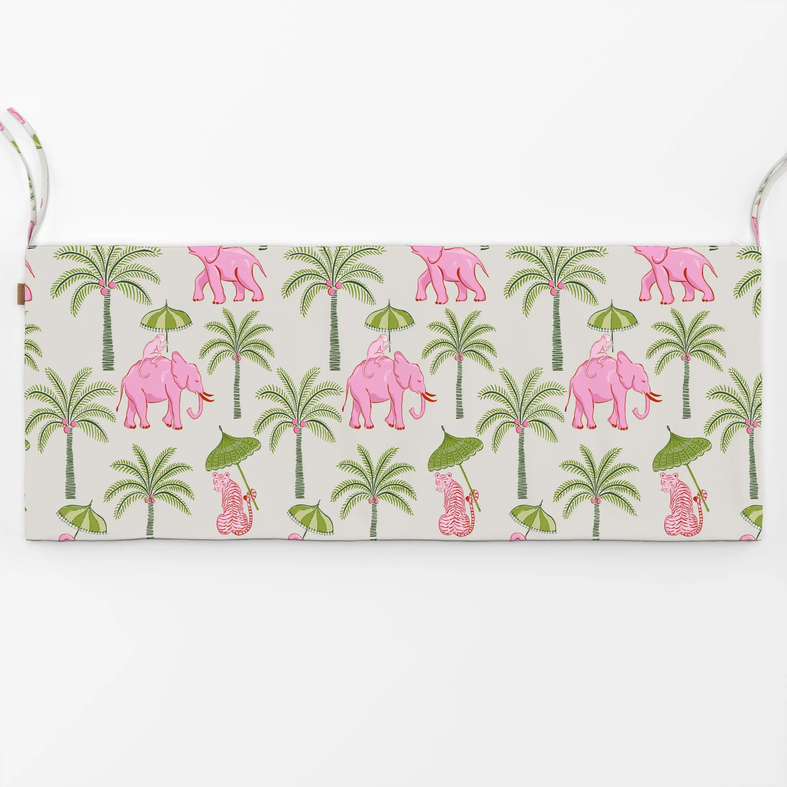 Bankauflage pink elephants with parasols - Sommer, Tiere, Safari & Dschungel - von „Vivian Hasenclever"; boho, Dschungle, Wi...