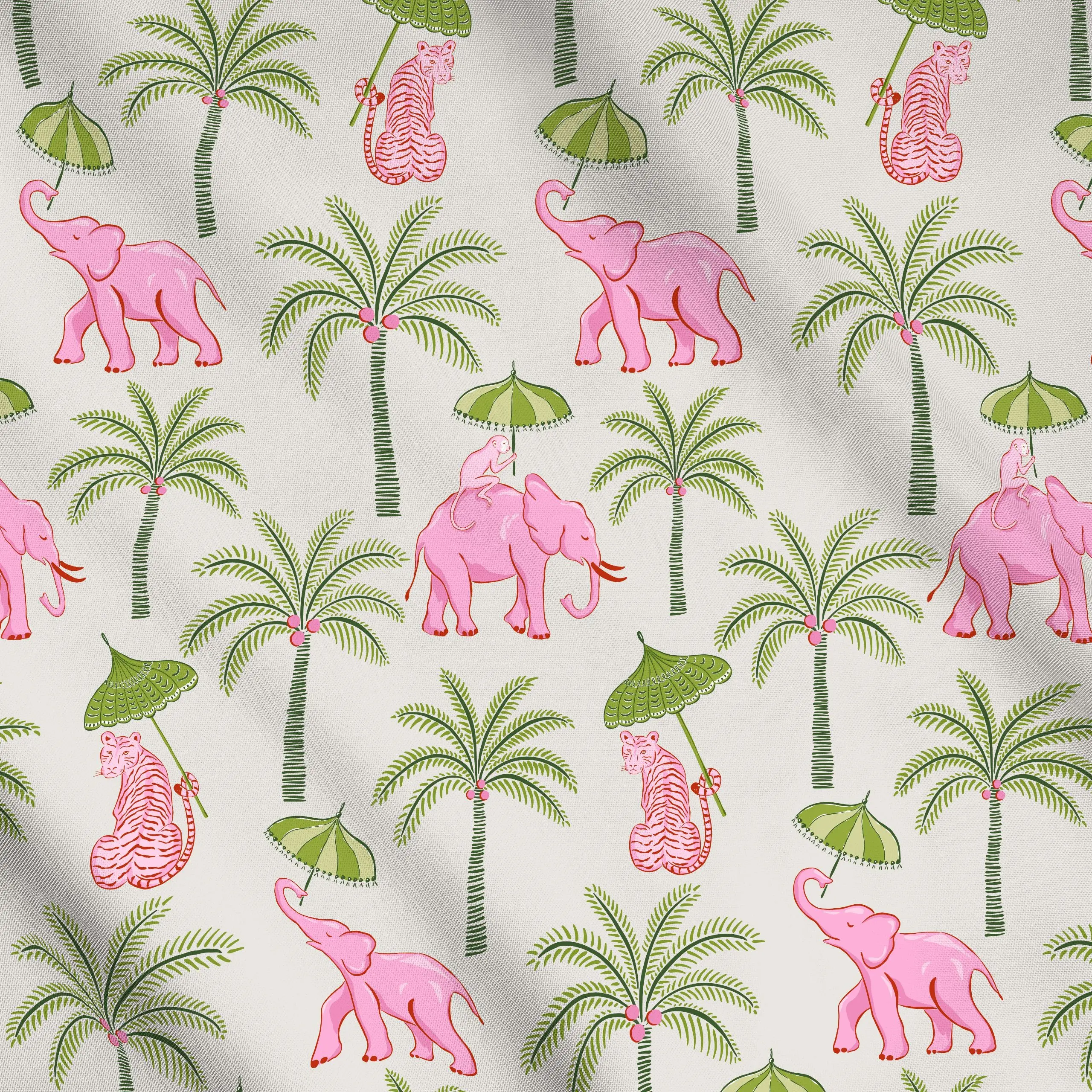Meterware pink elephants with parasols - Sommer, Tiere, Safari & Dschungel - von „Vivian Hasenclever"; boho, Dschungle, Wild...