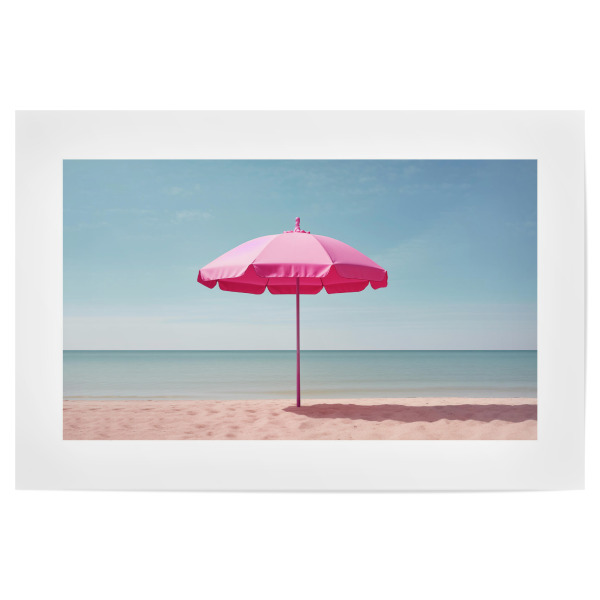 Poster "Malou Studio-Pink Parasol" artboxONE - Natur,Reise,Für Mama - Strand,Sonnenschirm,Sommer,Barbie,Sand,Urlaub,Pink_(farbe)