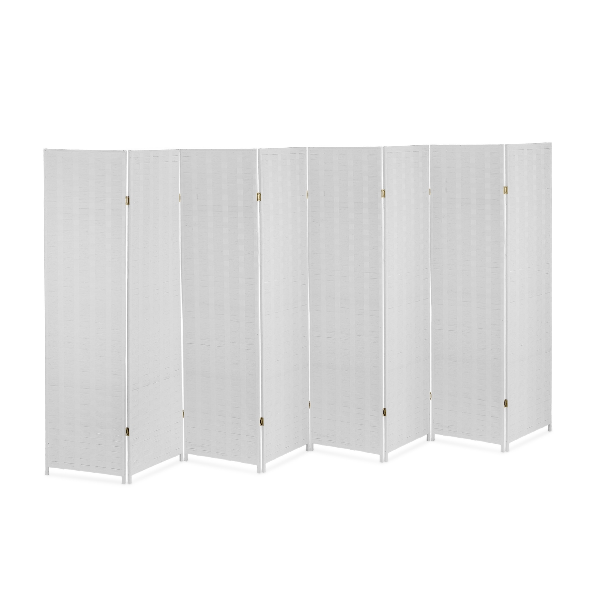 Relaxdays Paravent Raumteiler, HxB: 170 x 320 cm, faltbarer Raumtrenner, 8-teiliger Sichtschutz, Holz & Papierseil, weiß