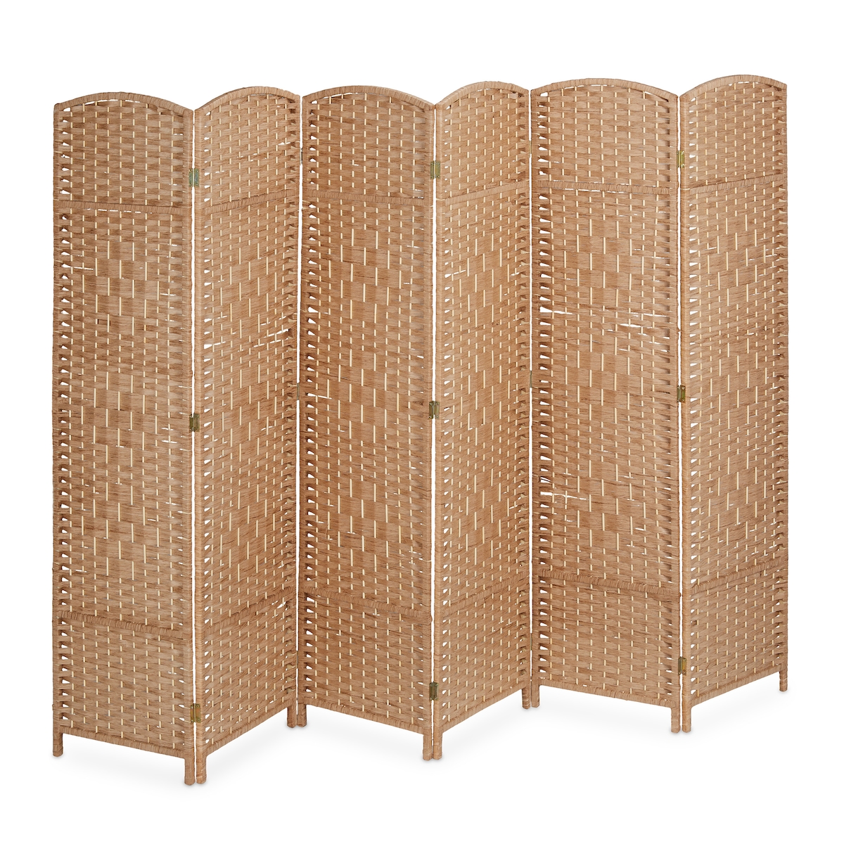 Relaxdays Paravent, 6-teilig, Raumtrenner faltbar, HxB 170x241 cm, Sichtschutz innen, Holz, Papierseil, Trennwand, natur