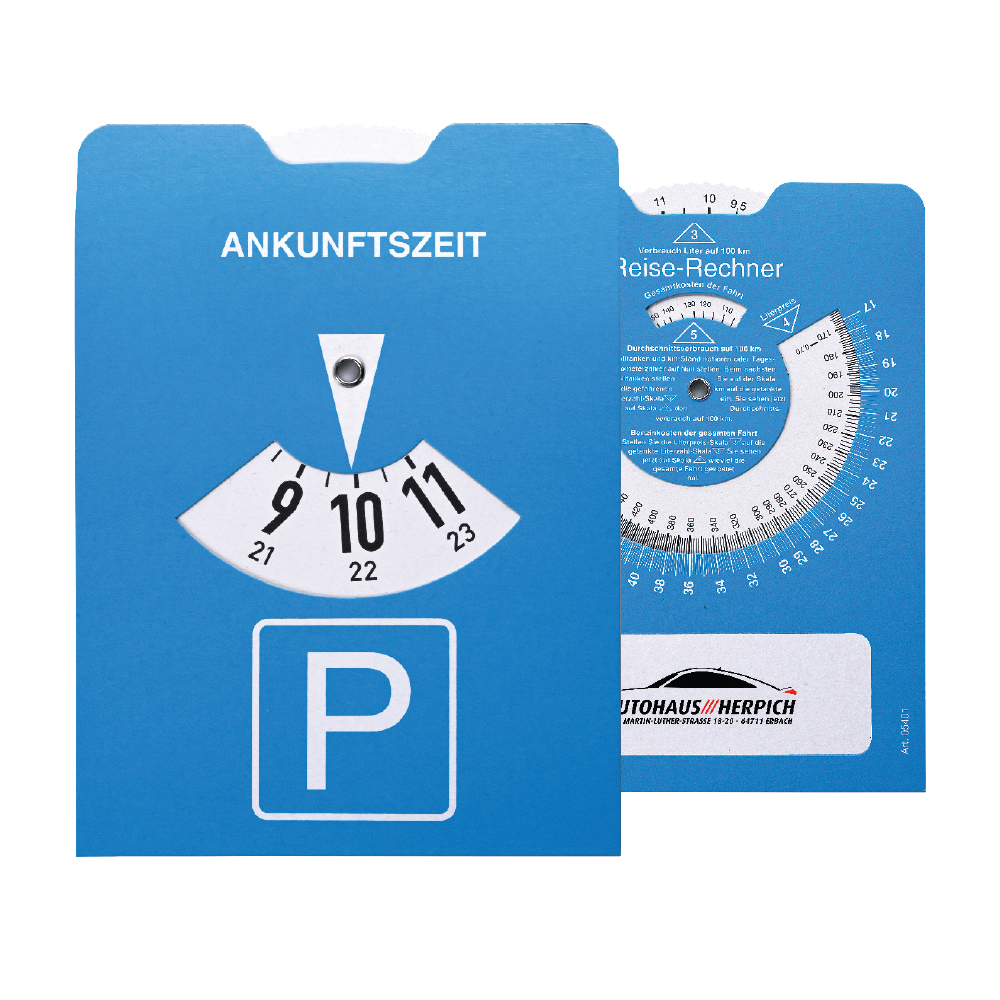 Werbeartikel Parkscheibe mit E-Auto Ladezeit Anzeige