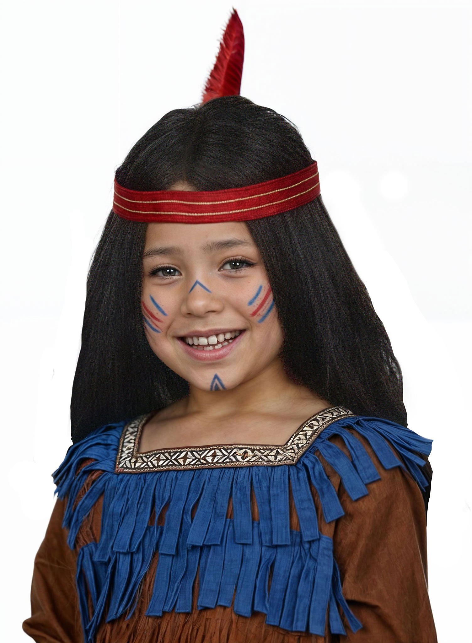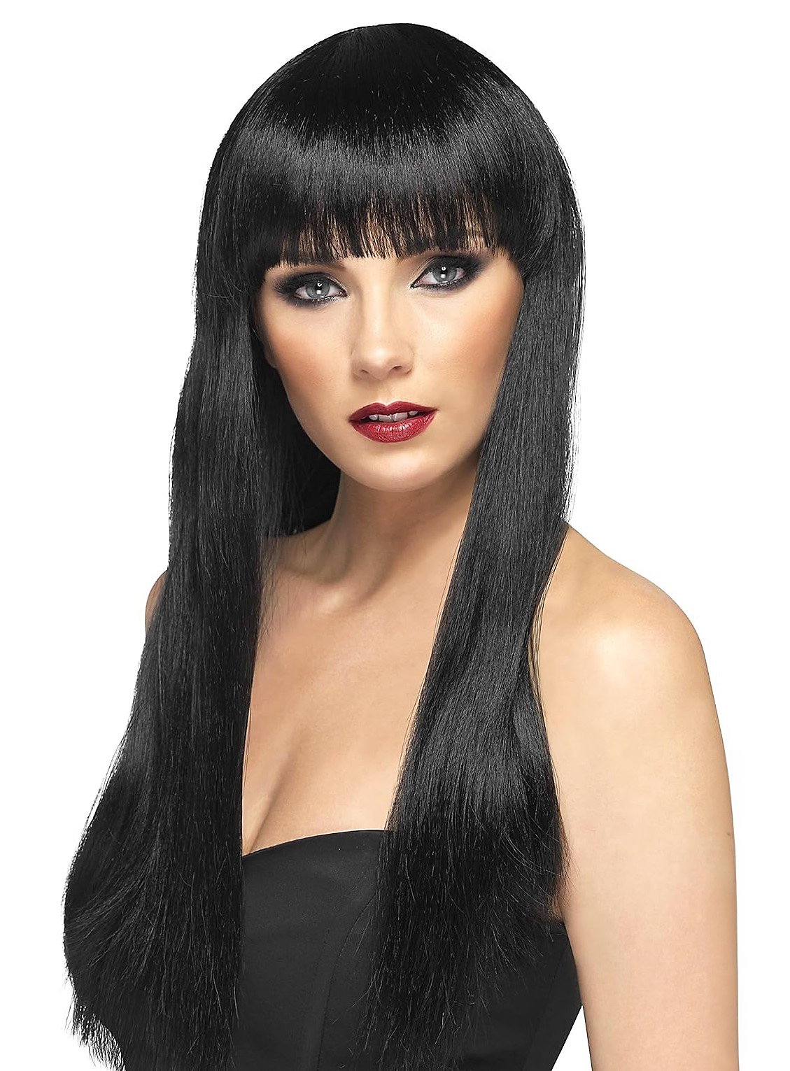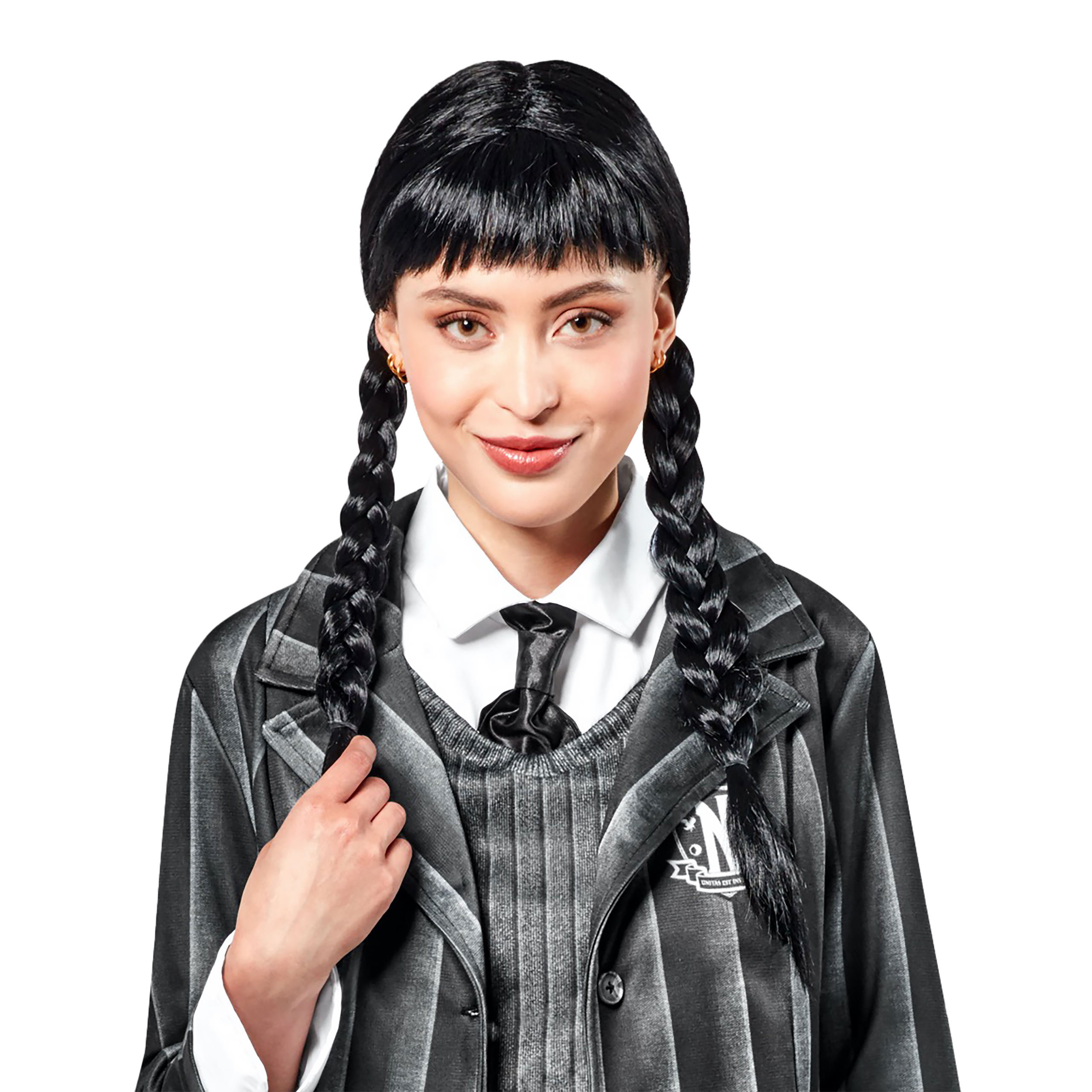 Parrucca nera a capelli lunghi con riga centrale per bambini