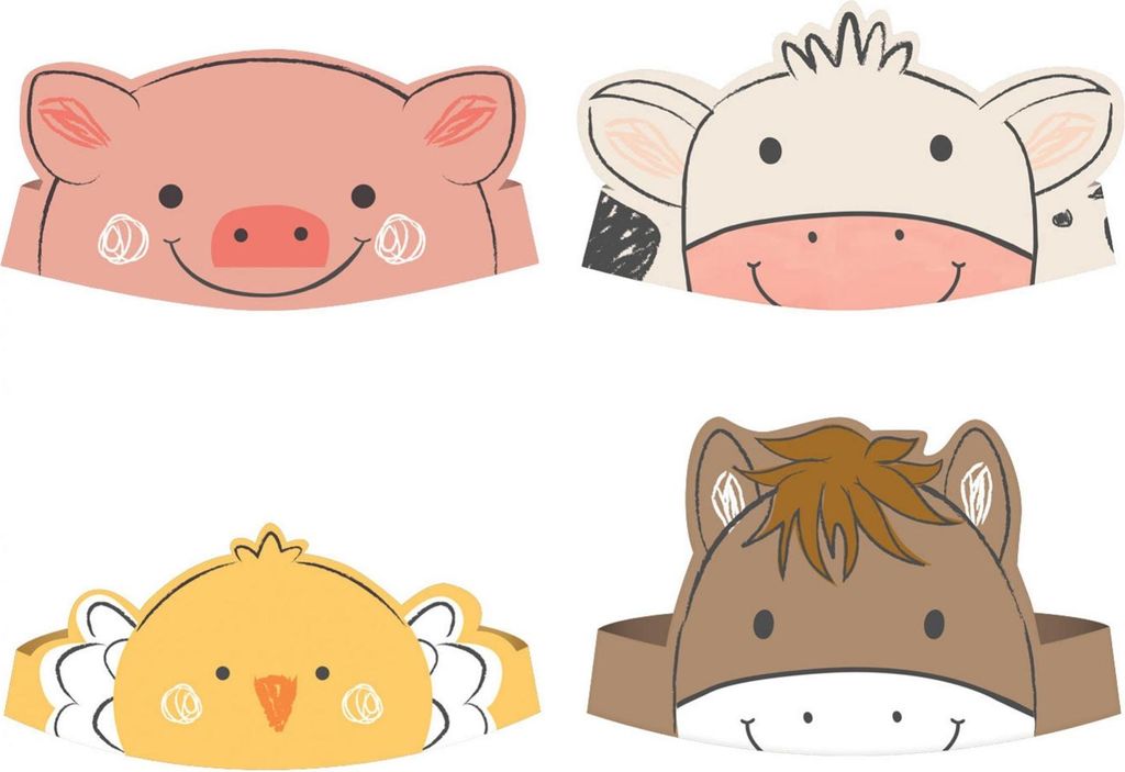 8 Partyhüte Bauernhof aus Karton für Kindergeburtstag - Einheitsgröße