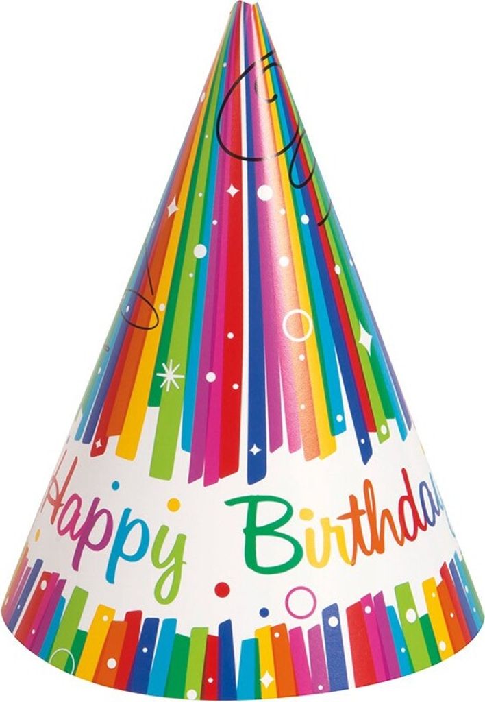 8 Rainbow Swirl Happy Birthday Partyhüte 15cm