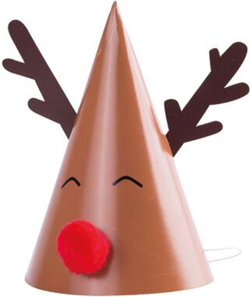 Rentier-Partyhüte für Weihnachten Partyzubehör 8 Stück braun-weiss-rot 11 x 17
