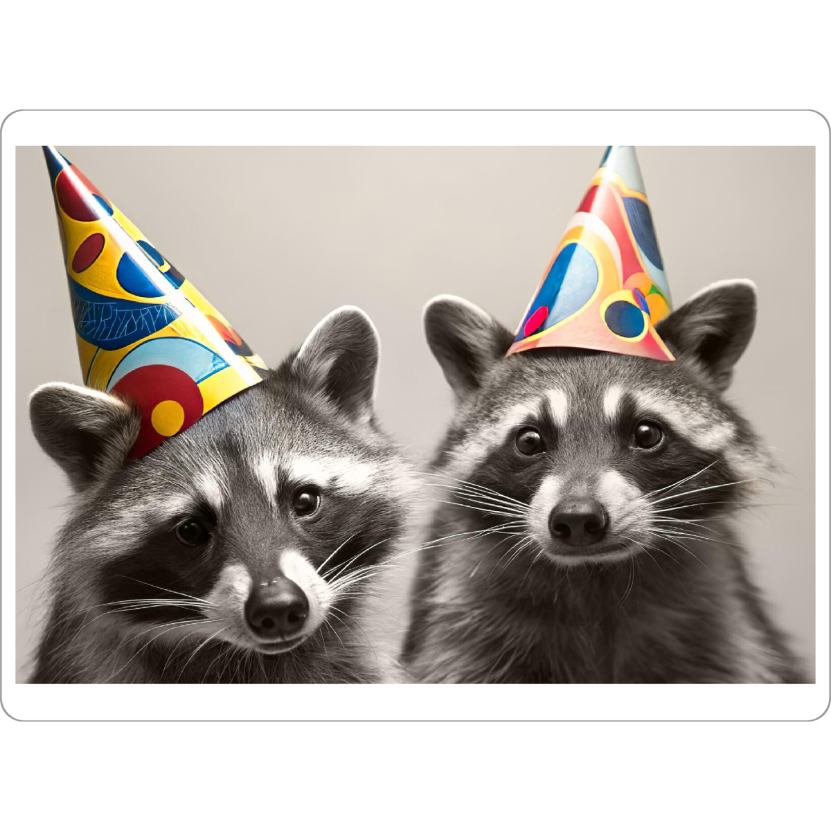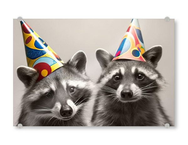 Acrylglasbild "Waschbären mit Partyhüten" artboxONE - Für Kinder,Tiere - Waschbären,Partyhüte,Feier,Tiere,Niedlich,Party,Tierwelt,Verspielt