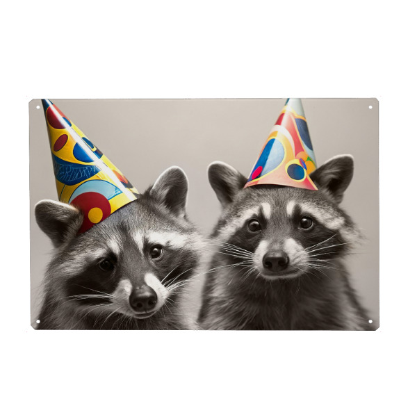 Metall Poster "Waschbären mit Partyhüten" artboxONE - Für Kinder,Tiere - Waschbären,Partyhüte,Feier,Tiere,Niedlich,Party,Tierwelt,Verspielt