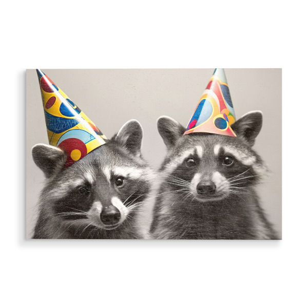 Holzbild "Waschbären mit Partyhüten" artboxONE - Für Kinder,Tiere - Waschbären,Partyhüte,Feier,Tiere,Niedlich,Party,Tierwelt,Verspielt