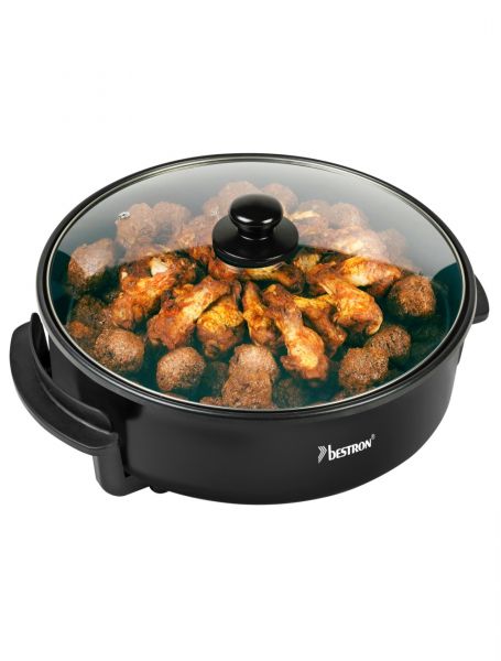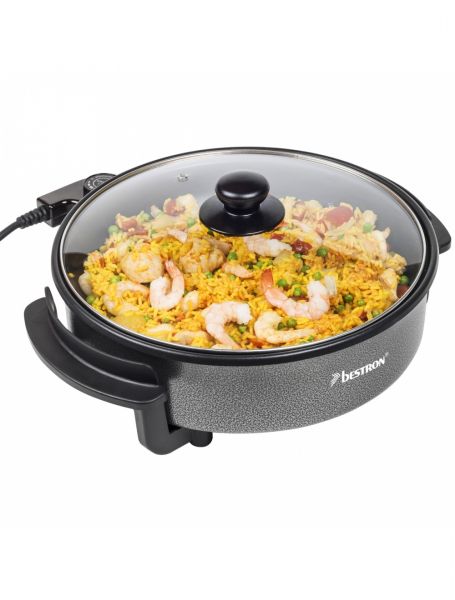 BESTRON Elektrische Partypfanne XL, AHP1500Z, Glasdeckel, Ø32cm, 1500W