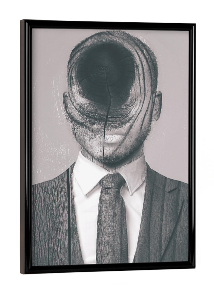 Poster mit schwarzem Rahmen "Woods Passport" artboxONE - Abstrakt - Man,Wood,Exposure,Mann,Holz,Passfoto,Krawatte,Anzug,Dermannohnegesicht,Männlich