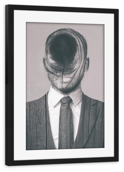 Poster mit Rahmen schwarz "Woods Passport" artboxONE - Abstrakt - Man,Wood,Exposure,Mann,Holz,Passfoto,Krawatte,Anzug,Dermannohnegesicht,Männlich