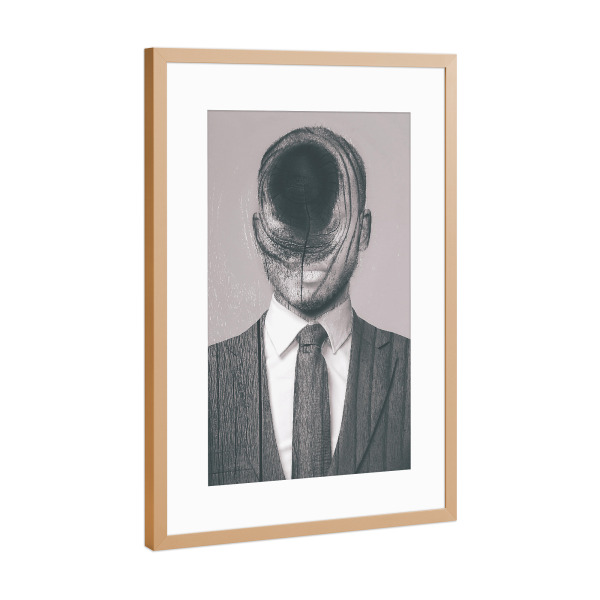 Poster mit Rahmen Kupfer "Woods Passport" artboxONE - Abstrakt - Man,Wood,Exposure,Mann,Holz,Passfoto,Krawatte,Anzug,Dermannohnegesicht,Männlich