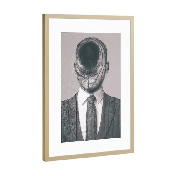 Poster mit Rahmen Gold "Woods Passport" artboxONE - Abstrakt - Man,Wood,Exposure,Mann,Holz,Passfoto,Krawatte,Anzug,Dermannohnegesicht,Männlich