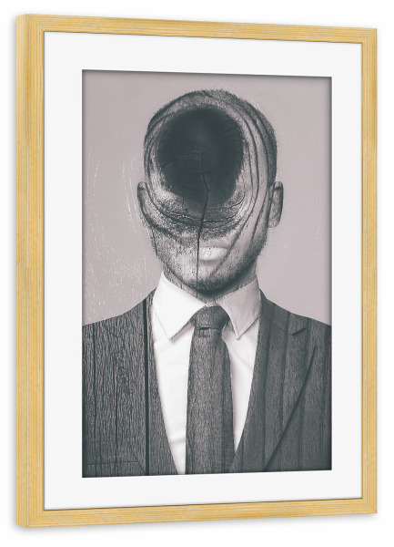 Poster mit Rahmen kiefer "Woods Passport" artboxONE - Abstrakt - Man,Wood,Exposure,Mann,Holz,Passfoto,Krawatte,Anzug,Dermannohnegesicht,Männlich