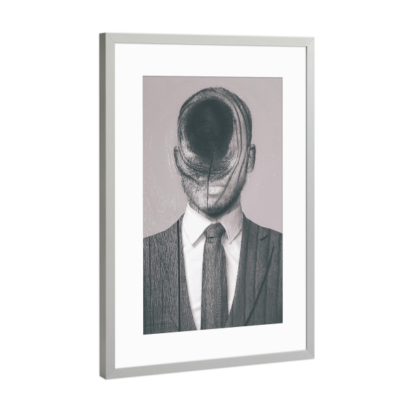 Poster mit Rahmen Silber "Woods Passport" artboxONE - Abstrakt - Man,Wood,Exposure,Mann,Holz,Passfoto,Krawatte,Anzug,Dermannohnegesicht,Männlich