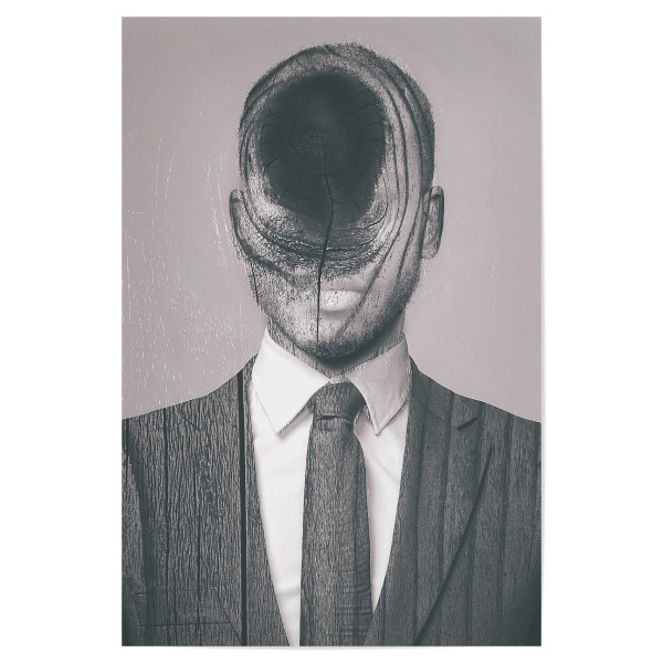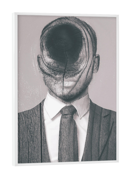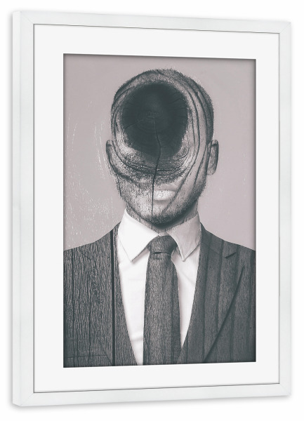 Poster mit weißem Rahmen "Woods Passport" artboxONE - Abstrakt - Man,Wood,Exposure,Mann,Holz,Passfoto,Krawatte,Anzug,Dermannohnegesicht,Männlich