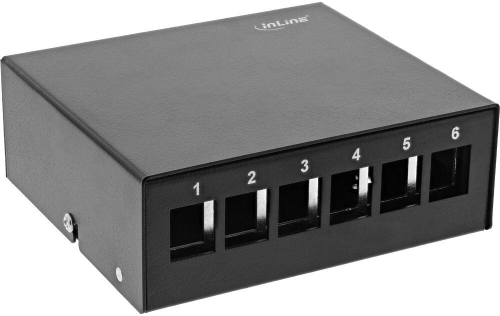 InLine Patchfeld-Dose Aufputz für 6x Keystone RJ45, Metall, schwarz RAL9005 (76266S)