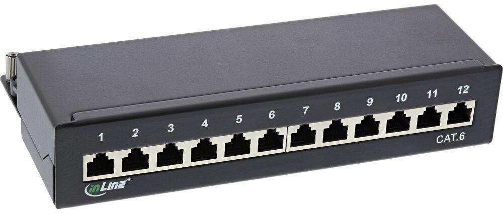 InLine Patchfeld Cat.6, 12-fach, Tisch-/Wandmontage, schwarz, RAL9005 (76209S)