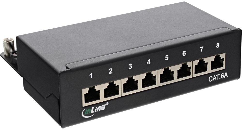 InLine Patchfeld flach Cat.6A, 8-fach, Montage auf Hutschiene (TS35), schwarz RAL9005 (76808A)