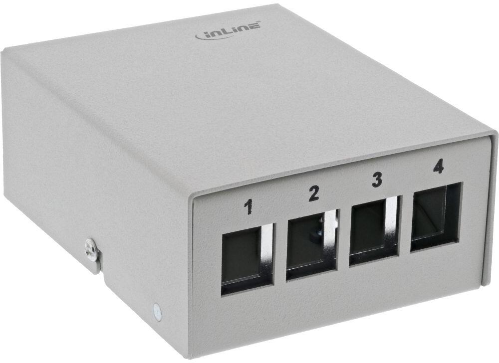 InLine Patchfeld-Dose Aufputz für 4x Keystone RJ45, Metall, lichtgrau RAL7035 (76264)