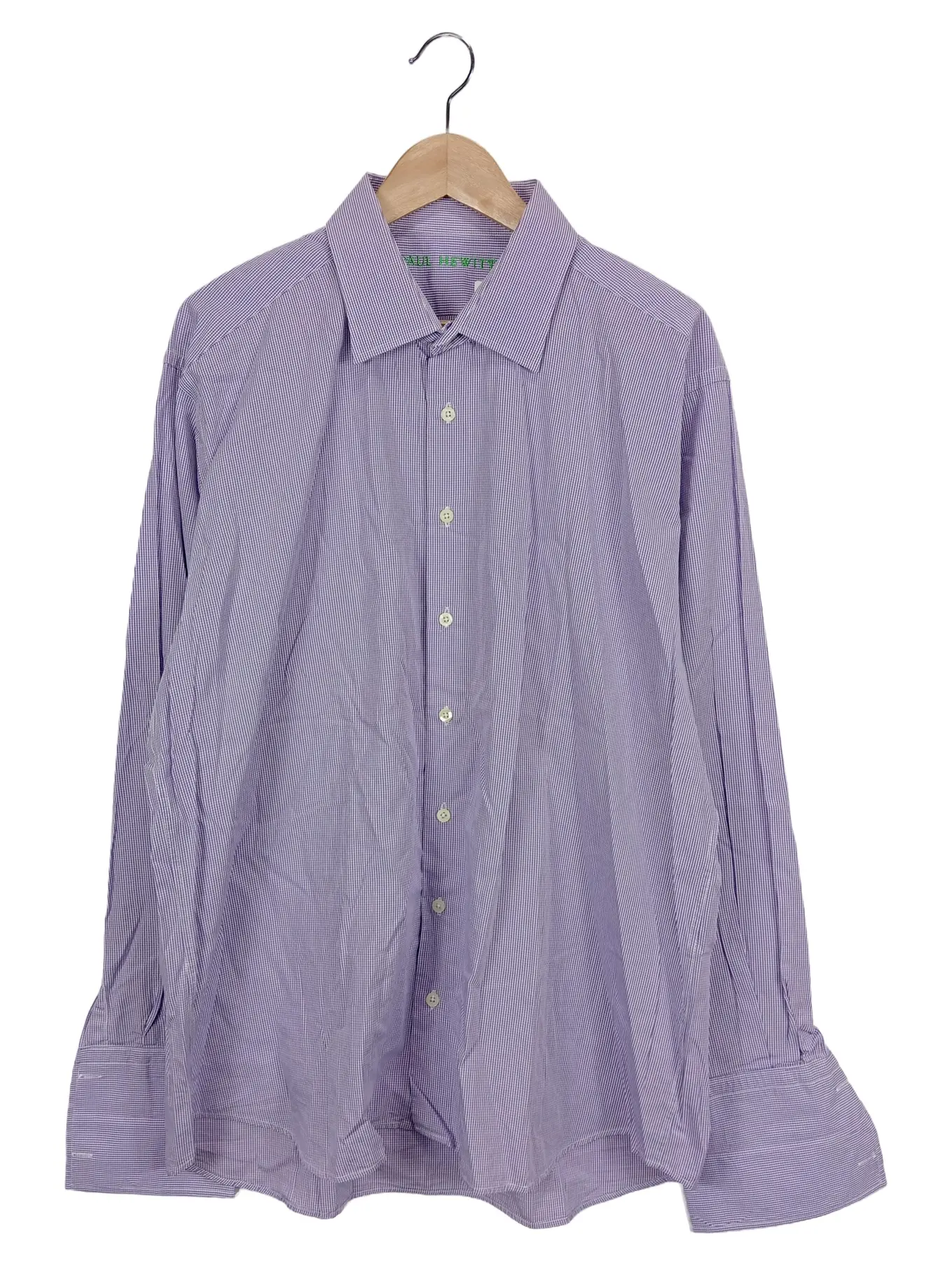 PAUL HEWITT Herren Business Hemd Lila Kariert Langarm Gr. 54/XXL Baumwolle