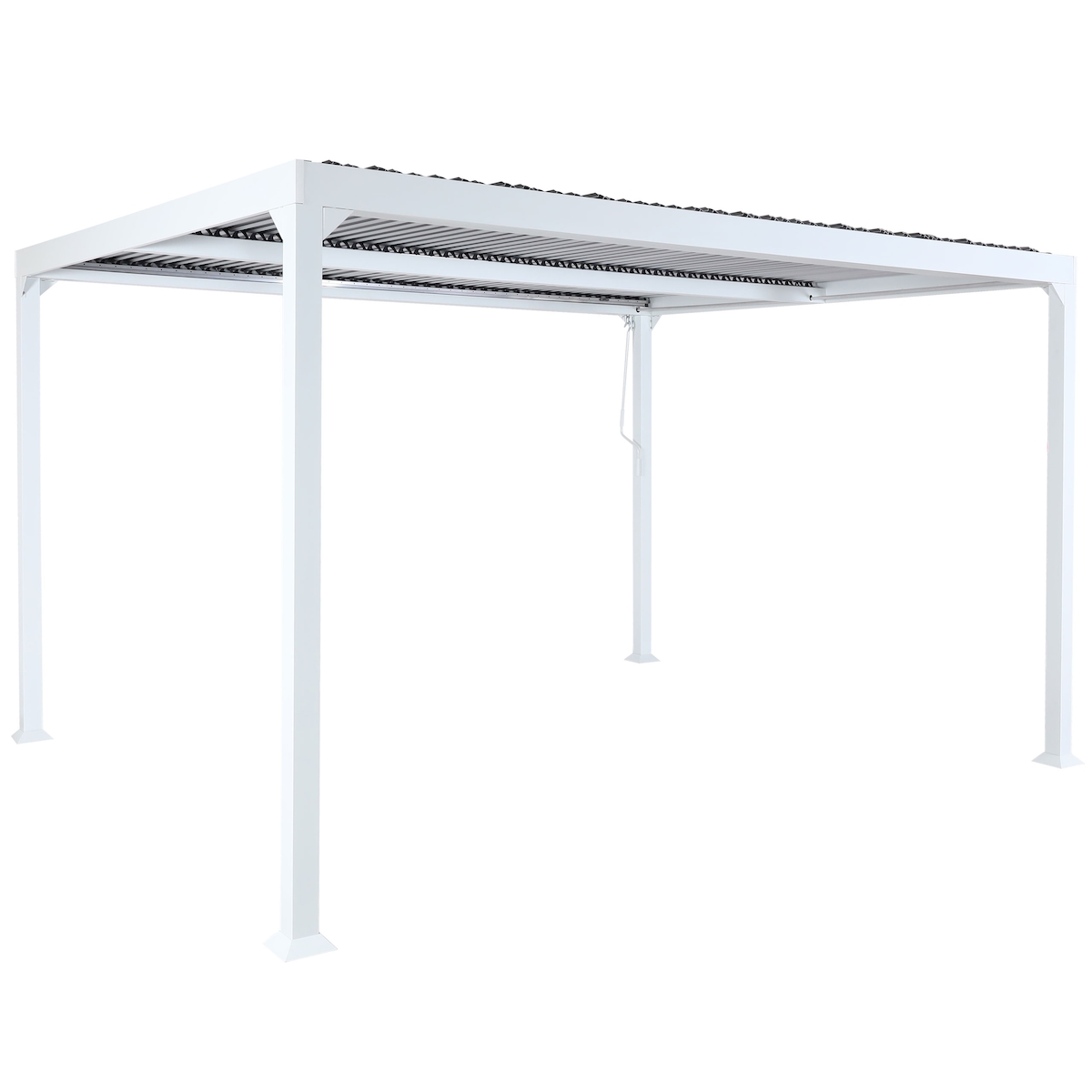 Mendler Alu Pergola HWC-L41, Lamellen-Pavillon Terrassenüberdachung, stabiles 8cm-Metall-Gestell 3x3,7m ~ weiß