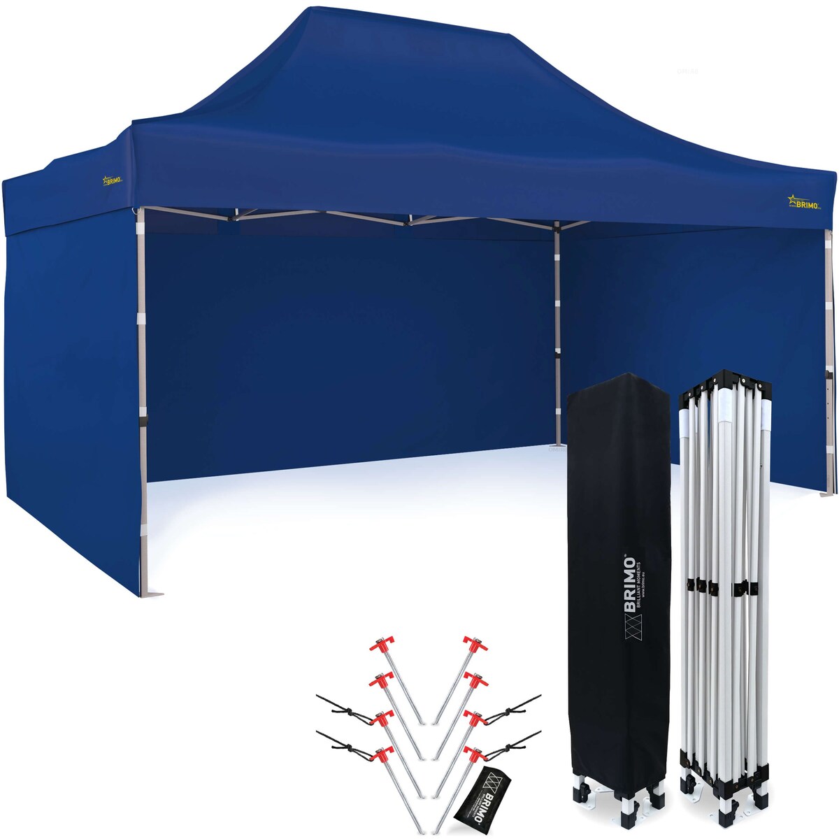 BRIMO Faltpavillons Pavillon 3x4,5 m wasserdicht stabil - mit 3 Wänden - Blau