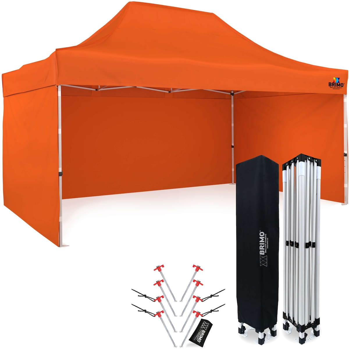 BRIMO Faltpavillons Pavillon zelt 3x4,5 m wasserdicht - mit 3 Wänden - Orange